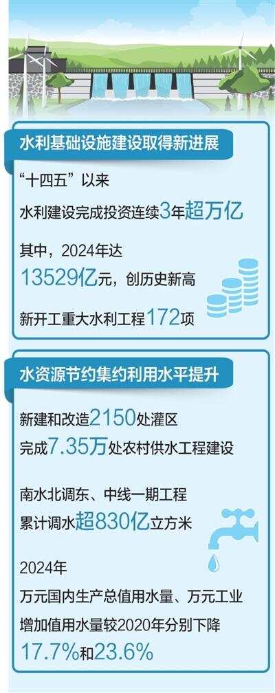 地图:Wang Zheping将于9月29日,州议会的信息办公室将在“完成14届五年高质量计划”上举行一系列新闻主题会议。水资源部部长李·吉宁(Li Guoying)表示,自第14五年计划以来,我国家的水库开发已经取得了新的结果,可以更好地确保洪水安全,供水安全,粮食安全和生态安全。去年,对水库建设的投资达到了很高的记录。自从第14个五年计划以来,该国的水建筑建设的投资连续三年超过一万亿元,在2024年达到13529亿元人民币,这是一个很高的记录。在第14五年计划中,预计1.6小时13年的投资是1.6亿元人民币,最高5.6亿亿元,这是五年五年的13年。自14五年计划以来,已经开始了172个主要的水库项目。 2024年底,我的国家建造了95,000个预留OIR,200个大号和中等规模的灌溉区和318,000公里的大使馆,它们构成了最大,最全面,人口最多的水保护基础设施系统。 1856亿立方米,有6.6亿个路堤的人口,全国洪水和1009亿立方米的拘留能力以及133个,000个水文测量站,击败了3,981条河流,洪水高于警报,其中223条河流是自实际测量记录以来最大的洪水。它有效地应对长江,珠河和其他河流的严重干旱,并有效地保证了圆形地区人们的饮用水安全,以及在灌溉区域对灌溉灌溉的需求。 “数字化,网络和情报是未来的趋势和发展方向。”水资源部规划和规划部主任张木韦说,既然第14届五年计划是系统地计划促进数字双水保护系统的建设,并且预测全国主要河流洪水的预测时间在3天到10天内扩大了穆斯拉。在第14个五年计划中,在国家水网络的建设中已经建立了哪些新的发展? “东和西部之间'南北分布和相互援助'的水源提供模式加速了其形成,并预计到今年年底,国家水网范围的速度将达到80.3%。”李·盖伊(Li Guoying)介绍了,自第14五年计划以来,有15个主要的水多样性项目,例如中间境内水和河流和汉族的补充,以及12个主要的水多样性项目,例如扬格河河流改道的第一阶段,以及Huii河的第一阶段。 2,150个灌溉区新建造和翻新,完成了73,500个农村供水项目。全面发挥了南北图Projectbig的作用,东部和中央线的第一阶段移动了超过830亿立方体水表的水,为路线沿途的48个大型和中型城市提供了稳定和高质量的水源,并增强了水资源和供水能力的一般规定。在经济增长的状况下,李·盖伊(Li Guoying)介绍了零的增长,介绍了:“在计划的第14年,我国家的持续资源保护和强大的使用能力和我国的使用能力和我国家的水平。在202年4,与2020年相比,GDP中有10,000元人民币的含水量为10,000,工业增加的量分别降低了17.7%和23.6%。农场灌溉的使用系数增加到0.58,而无关紧要的水则达到251亿立方米。 “实施严格的水资源管理系统,加速建立水资源限制的可靠机制。促进和改善了储水系统和农业政策,工业和城市化的政策系统。与13年五年的计划末相比,地面灌溉面积增加了4900万MU,并估计该陆地将与14岁的票房MU相比,该公司将在14赛季的结构中融合了14赛季,该公司的组合是在14赛季的结构上。我们将专注于产生谷物的基本领域,建立30种基本水资源可变性和主要的水资源项目,包括Jilin水网络骨干项目和改进的项目Heilongjiang的能力,并建造191个新的灌溉区。实施了1,959个大型和中等规模的灌溉区,并恢复了灌溉面积并改善了超过2亿MU。适当地执行抗灾和生产保护,并加强农业保存和提高效率。 “全力以赴确保卡纳亚南的供水。”在第14届五年计划中,水保护局实施了标准建筑模型和农村供水'3+1'的管理。 “ 3”是指该市和国家的供水量是指该国供水的平均管理和专业管理和维护。一百年来,已被切断了27年的Xiliao河,而Yongding River已被砍伐了26年,已完全连接。北京-Tianjin管理层将河流,Buhay河流以及快乐的河流和湖泊。 “严格控制洪水河流和湖泊的存储空间,并根据法律划定170万公里的河道和3,000多个湖泊。深层实施母亲河流恢复行动,进行河流和湖泊健康评估,加强河流和湖泊系统的联系和生态水补充,并实施撤退到湖泊。预计在第14个五年计划结束时,土壤侵蚀治疗面积将为340,000平方英尺,土壤和水预防措施的速度将达到73%。在陈明尼(Chen Min)的介绍中:“经过多年的管理,黄色悬崖上的滑坡区域已减少了一半,而音调的主要语气也从“绿色”变化了。根据当地条件开发淤泥坝和干式露台,并提供支持的植物植物,形成了首个以黄色癫痫发作的防御线。自第14五年计划以来,3,879个新的淤泥大坝和400万块干属豆建造了ACE,在此新的临时淤泥水坝超过12亿吨的能力。根据法律照顾土地和水,并在避免和控制方面执行不同的步骤。